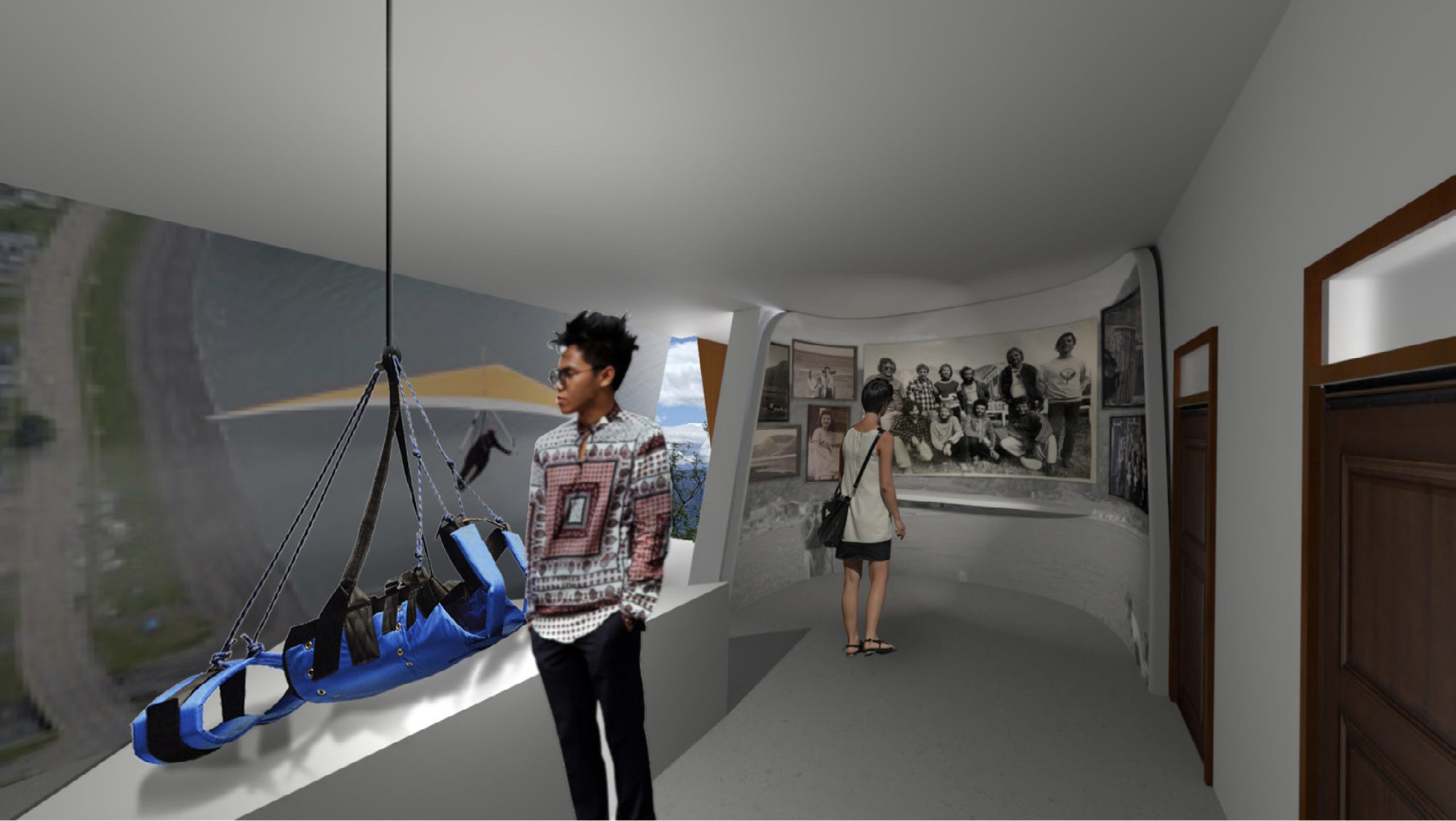 Une première salle propose une expérience enveloppante à propos des vents, où l’on explique pourquoi Mont-Saint-Pierre est un site de vol libre exceptionnel.